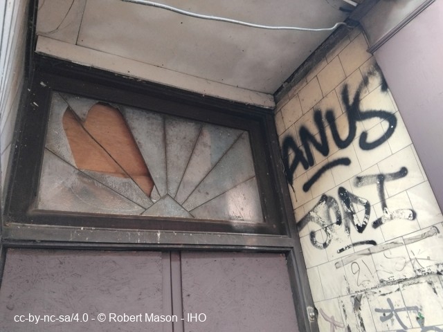 Art Deco glass detail at former Kennedy's Sausage shop, 18a High Street, South Norwood