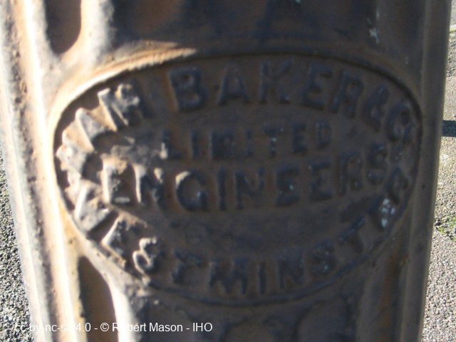 Sewer vent pipe, South Norwood with maker's plate 'HAM BAKER & CO LIMITED, ENGINEERS, WESTMINSTER'.